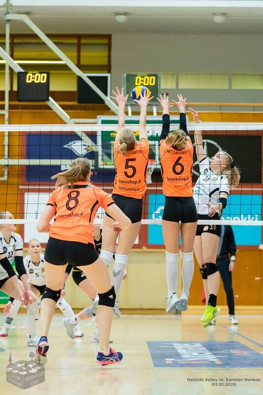 Sunnuntain pelissä Helsinki Volleyta vastaan Kisahallille saapui niin ikään joensuulainen Karelian Hurmos. Hurmos oli vahvistunut viime näkemästä, sillä aiempien vuosien liigapelaaja Elli-Noora Hiltunen oli liittynyt Hurmoksen riveihin. Ensimmäisessä erässä tuli hyvin selväksi, että Hurmos kilpailee tosissaan pudotuspelipaikasta, kun vierasjoukkue sai taottua heti erän alkuun jo 0-5 -karkumatkan. Tämän jälkeen seuraavat kymmenen palloa kuljettiin tasatahtia, jonka jälkeen Hurmos sai jälleen kiskaistua lisää eroa kotijoukkueeseen kovilla laitalyönneillä, joista vastuussa olivat etenkin Hurmoksen uusi hakkuri Elli-Noora Hiltunen sekä Nea Hämäläinen. Oltiin jo tilanteessa 6-16. Helsinki Volley sai tuplavaihdon siivittämänä peliään hieman kasaan, ja mm. Netan ja Katjan onnistumisilla noustua tilanteeseen 13-17 asti, mutta Hurmoksen karkumatka oli jo liian suuri kirittäväksi. Ensimmäisen erän lukemiksi 18-25. Toiseen erään lähdettiin uudella päättäväisyydellä, ja kotijoukkue saikin onnistumisia hyökkäyksessä niin laidasta kuin keskeltäkin. Toista erää kuljettiin rinta rinnan tilanteeseen 9-9 asti, jonka jälkeen Hurmos sai taas uuden vaihteen silmään, ja jälleen oltiin viisi pistettä takamatkalla. Roosa ja Sonja etunenässä Helsinki Volley alkoi kuitenkin takoa pisteitä niin, että peli oli tasan tilanteessa 18-18, jonka jälkeen erä lopulta paketoitiin meille pistein 25-22. Kolmas erä oli erittäin tasainen tilanteeseen 18-18 asti. Kovia lyöntejä ja puolustuksia tuli kummallekin puolelle tasaiseen tahtiin. Etenkin Roosa, Katja ja Sonja ottivat erän alussa vastuuta pisteiden tekemisessä kotijoukkueelle. Pistetalkoisiin erän edetessä liittyi vahvasti hakkurina pelannut Riikka, ja viimeisen pisteen kotijoukkueelle erän päätökseksi naulasi passari Tuuli. Eräpisteiksi 25-18. Koko neljäs erä oli Helsinki Volleyn vahvaa tekemistä. Joukkue auttoi toinen toistaan, ja etenkin Roosan useat haamupuolustukset ja Riikan torjunnat sytyttivät joukkueen. Onnistumisia tuli vahvan puolustuksen lisäksi hyökkäyspäästä niin laidasta, kuin keskeltäkin. Erä meille selvästi pistein 25-16, ja koko ottelu erin 3-1. Parhaana palkittiin upeita puolustuksia, torjuntoja ja hyökkäyksiä takonut Riikka. Valmentajan kommentit pelistä: "Hurmos on vahvistunut viime näkemästä ja he aloittivat aggressiivisesti. Emme pystyneet vastaamaan ensimmäisessä erässä. Joukkueelle tämä oli tärkeä ottelu kaikin puolin. Puolustuksessa loisti tänään useampi pelaaja. Lisäksi olin kuulevinani kannustusta uudella äänenvoimakkuudella katsomon puolella. Suuri kiitos Helsingin kansainvälisen koulun lentisjoukkueelle avusta pelitapahtumassa! Peli oli yksi kovatasoisimmista tähän asti, ja Helsinki Volley pääsikin jo väläyttelemään vahvuuksiaan torjunta-puolustus-pelissä. Runkosarjaa on jäljellä enää yksi peli, sunnuntaina 10.3. klo 15 Kisahallilla pelattava kotiottelu Raision Urheilijoita vastaan. |
